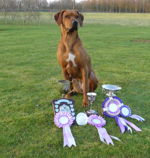 Storm was from Breeze's second litter and started showing at six months old. Storm had a promising show career and won Best Bitch in Show at the Rhodesian Ridgeback Club of Great Britain Open show. Sadly due to an injury to her front shoulder she decided to retire from the show world. Storm had also been obedience trained from a young age.